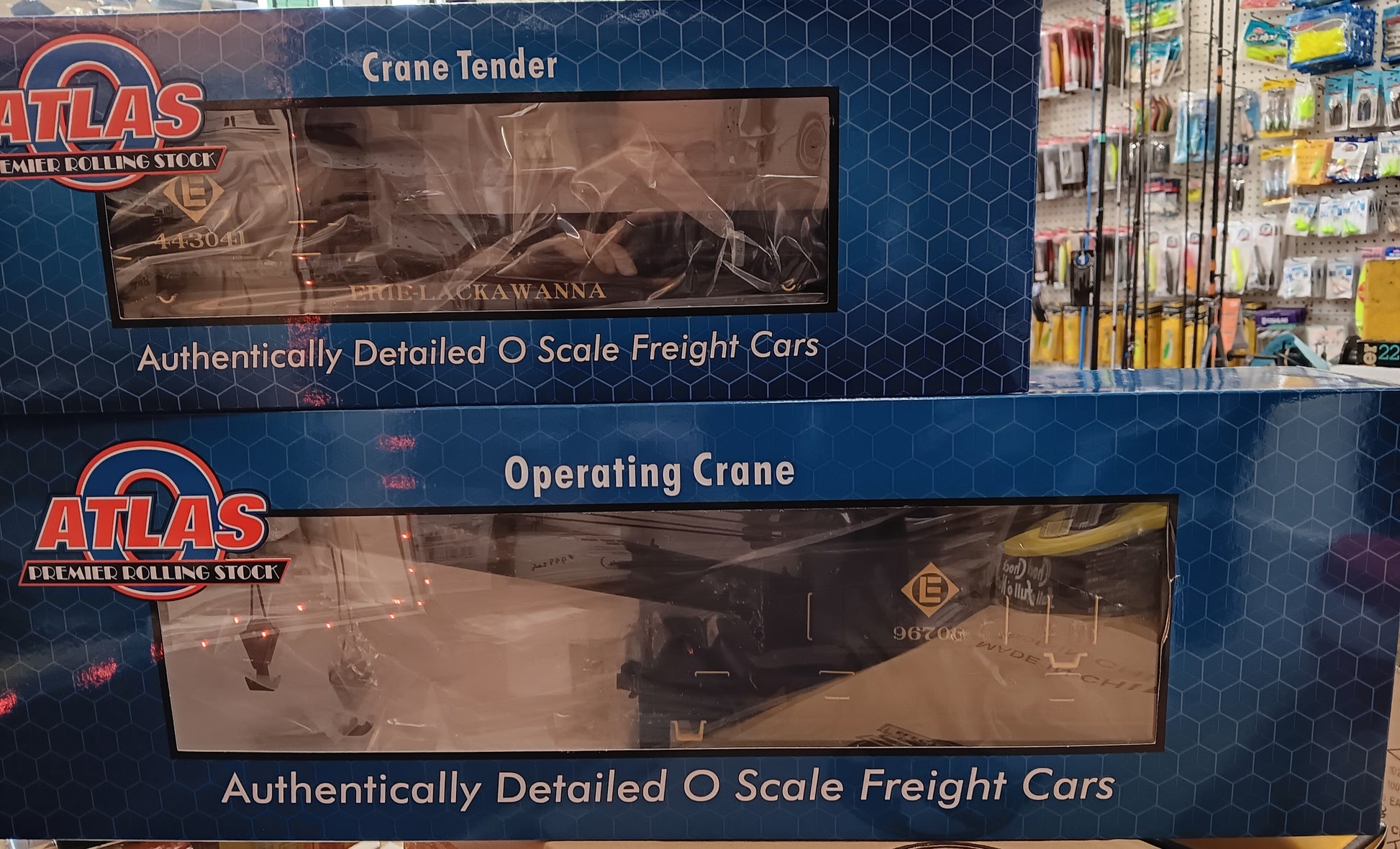 Atlas O # 3001742 & # 3001748 Erie Lackawanna Crane # 96700 & Tender # 443041 ( 3 Rail )