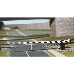 Designed for easy operation and perfect for any era. Fully assembled with black and white or red and white arm equipped with a red LED, realistic counterweight and base. Just press the switch (included) to lower or raise the gate and activate the red warning signal.