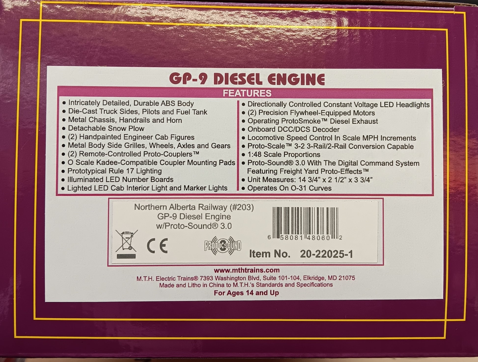 E-Z Catch Custom Northern Alberta Railway Cab 203 MTH Premier GP-9 Cab # 203, Dawson Creek