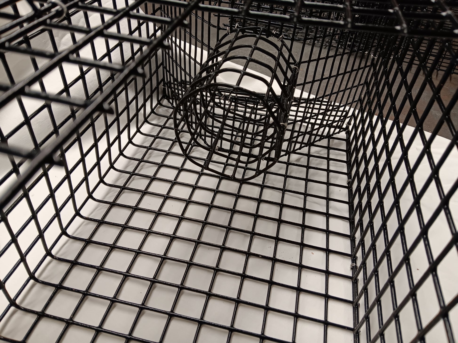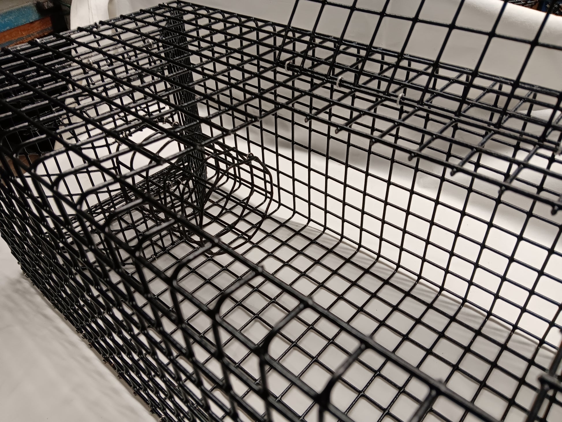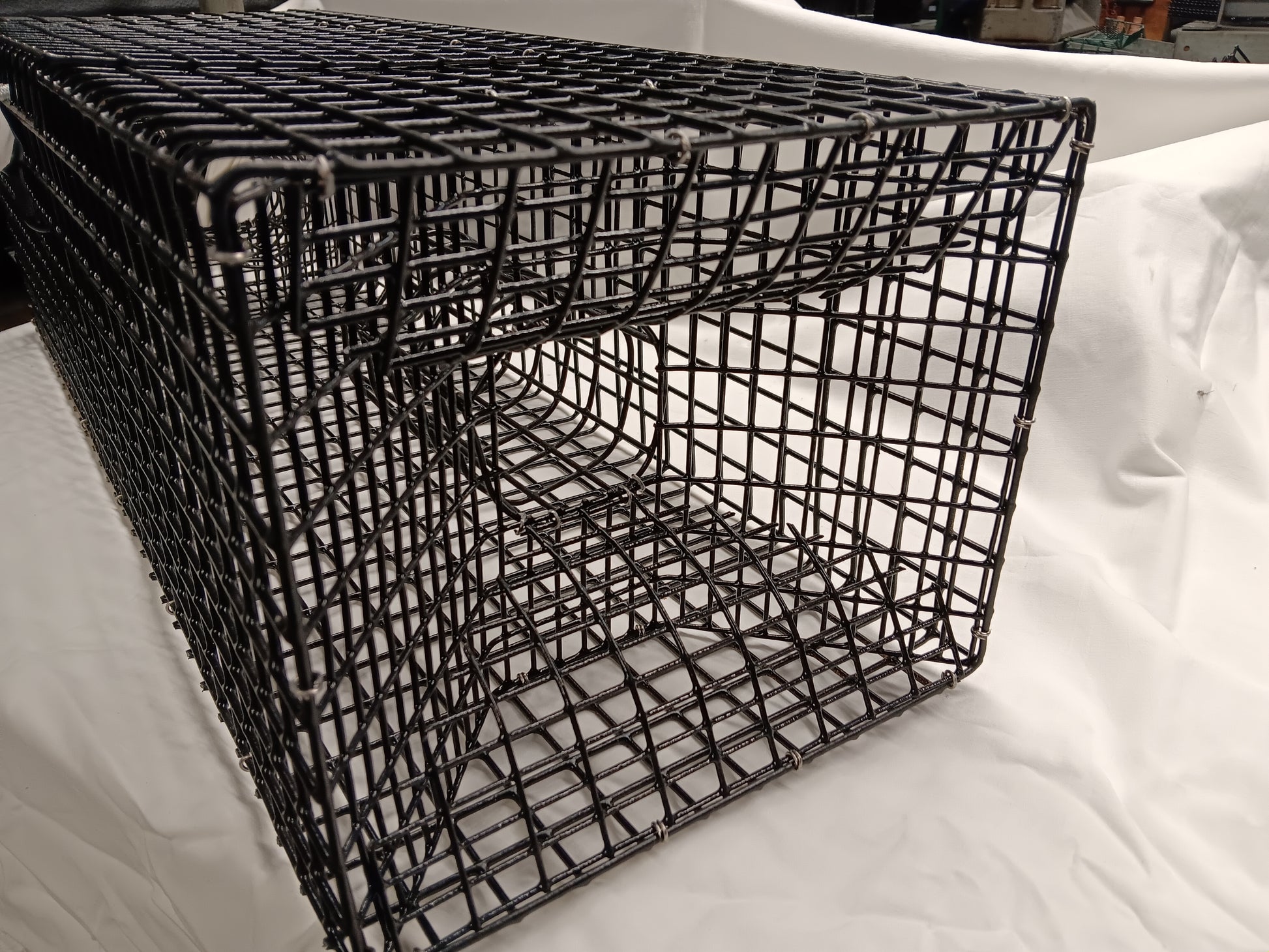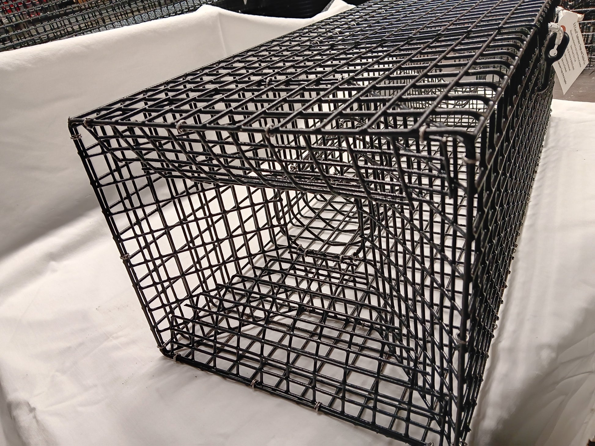 Features Built in Two Funnel Design, Low Profile, Large Single Chamber, One Top Door, PVC Coated 14 Gauge Riverdale 1" x 1" mesh Wire... Fastened with Stainless Steel Hog Rings..Funnels are 1/2" x 1" mesh... Just Wire tie in a fish carcus and catch all the bait you need..... Designed to Catch Bait Crabs for Blackfish & Tautog.... Any Questions, Just Ask...