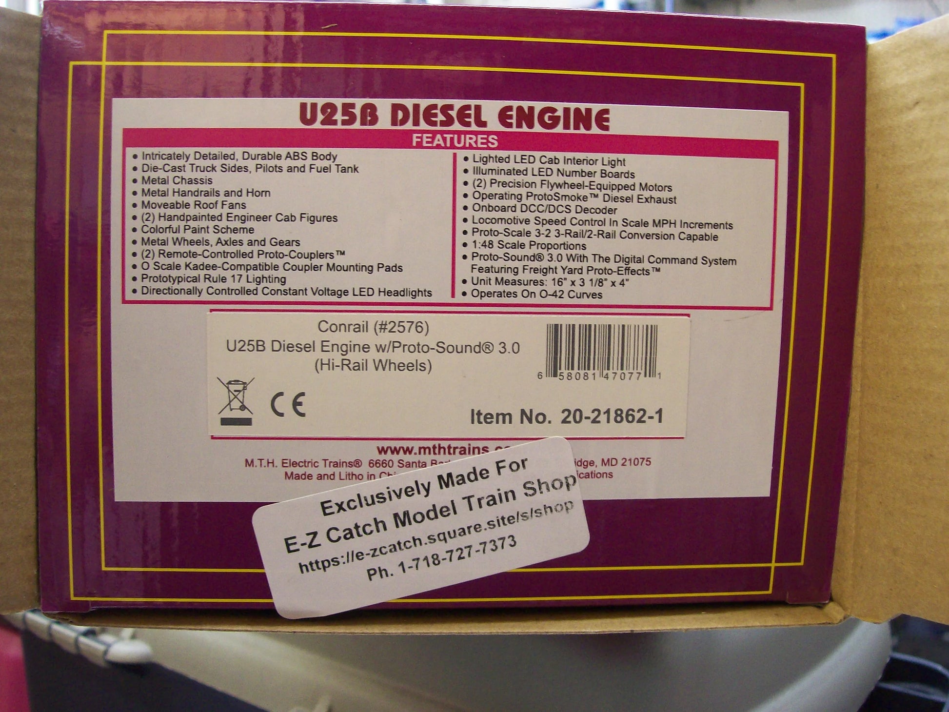 NOW IN STOCK, LIMITED SUPPLY, E-Z Catch Custom Run MTH Premier Conrail ( Patch ) U-25-B ( Cab # 2576 ) E-Z Catch / MTH Item # 20-21862-1