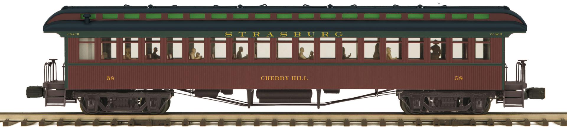 ETA EARLY 2026 MTH O Scale Premier # 20-62104 Strasburg 64’ Woodsided Coach Car