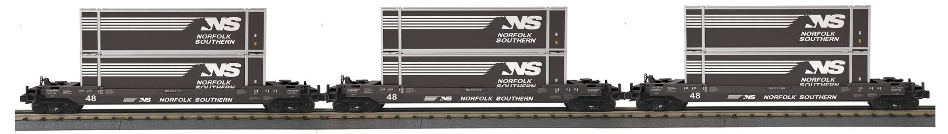 MTH RailKing # 30-70129 Norfolk Southern O Gauge 3-Car Husky Stack Set